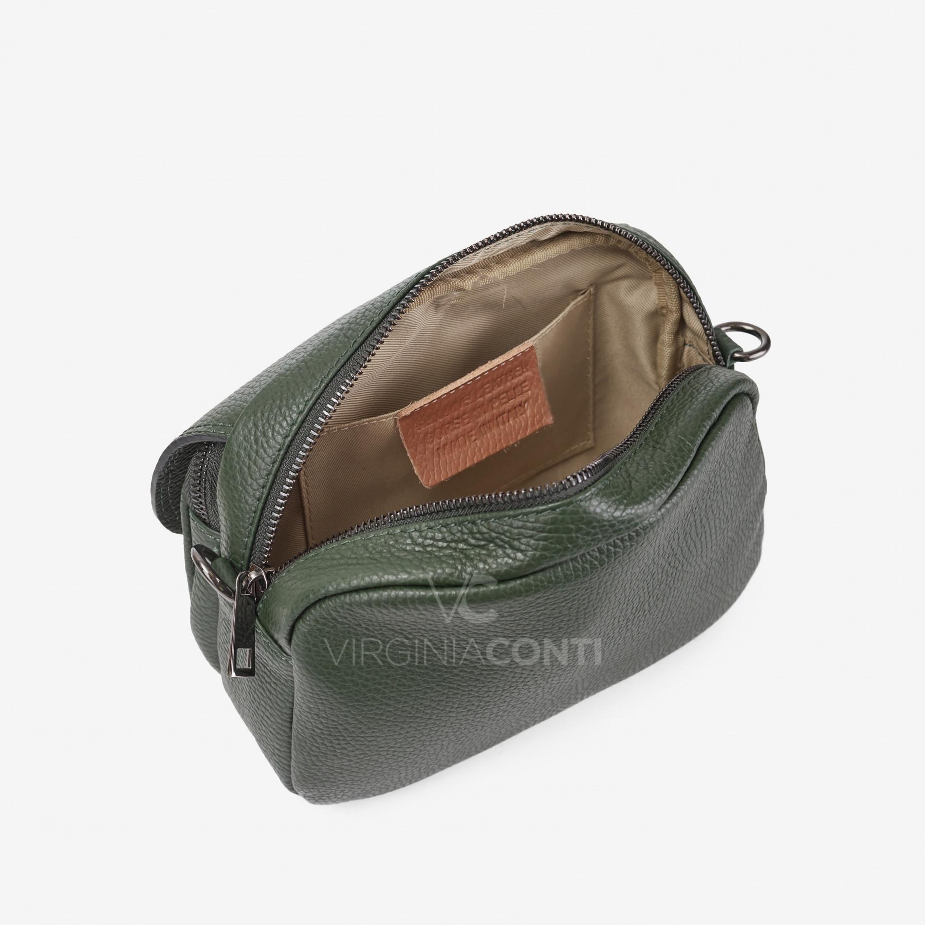 Шкіряна Сумка через плече Virginia Conti темно-зелена 03115_L