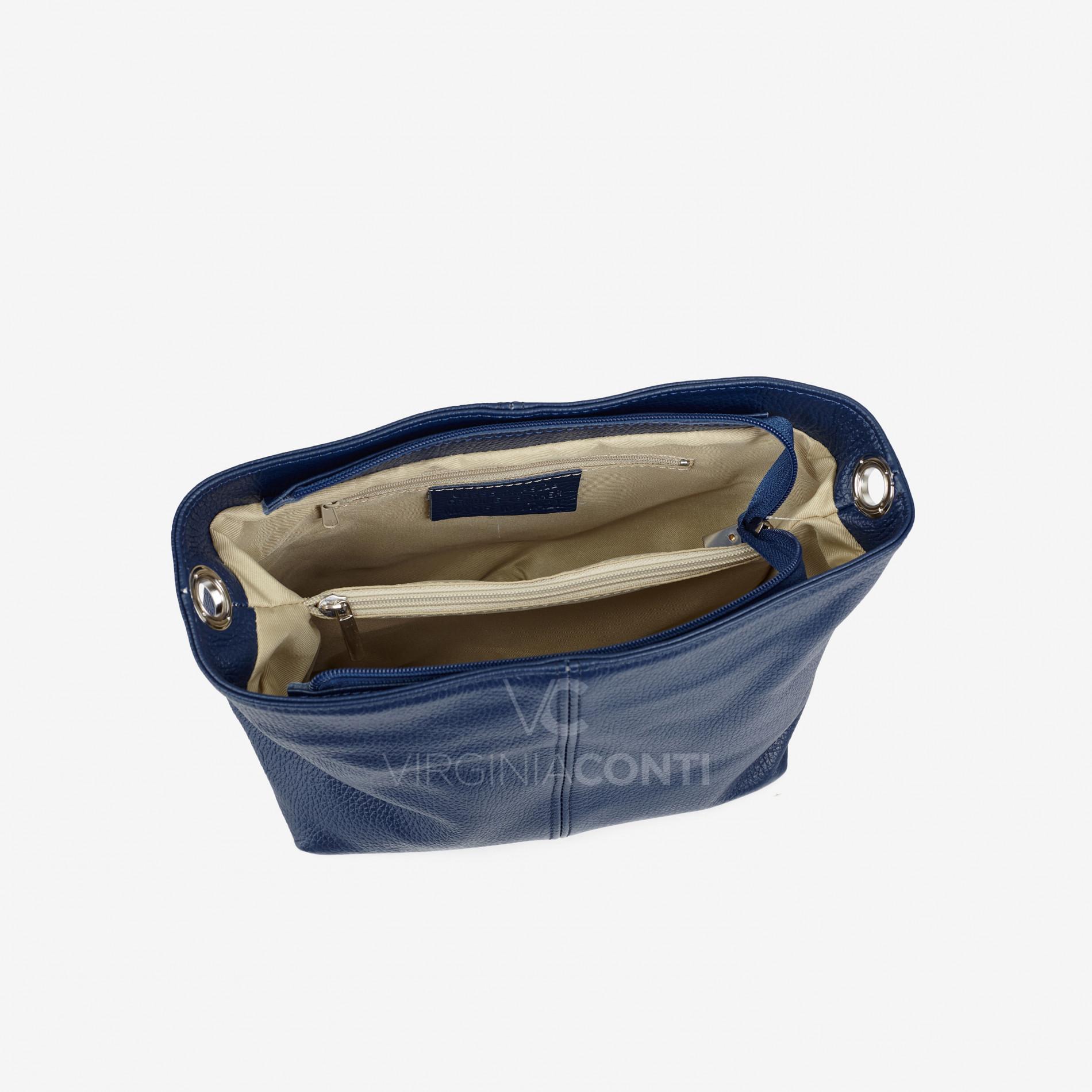 Шкіряна Сумка через плече Virginia Conti темно-синя 03330