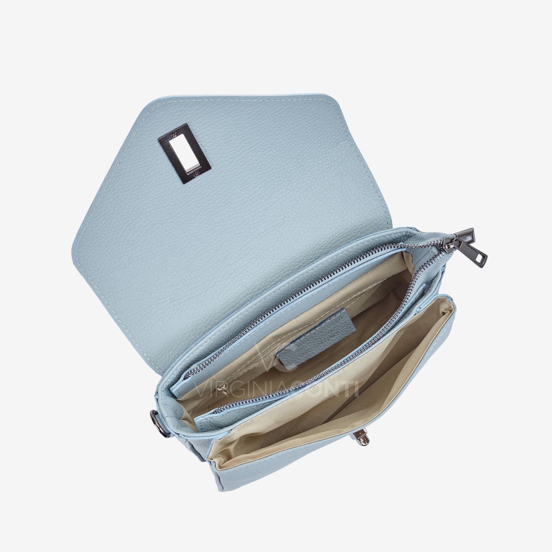 Шкіряна Сумка через плече Virginia Conti блакитна 03367