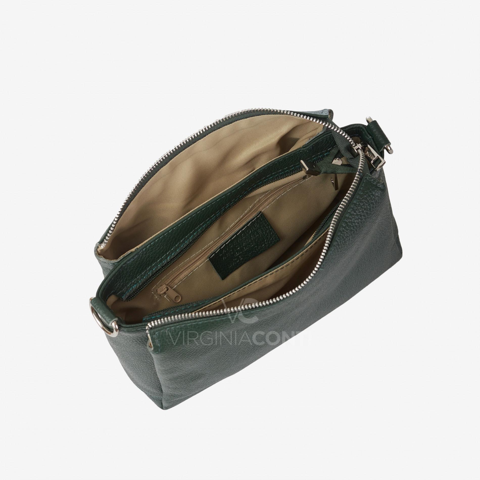 Шкіряна Сумка через плече Virginia Conti темно-зелена 03401