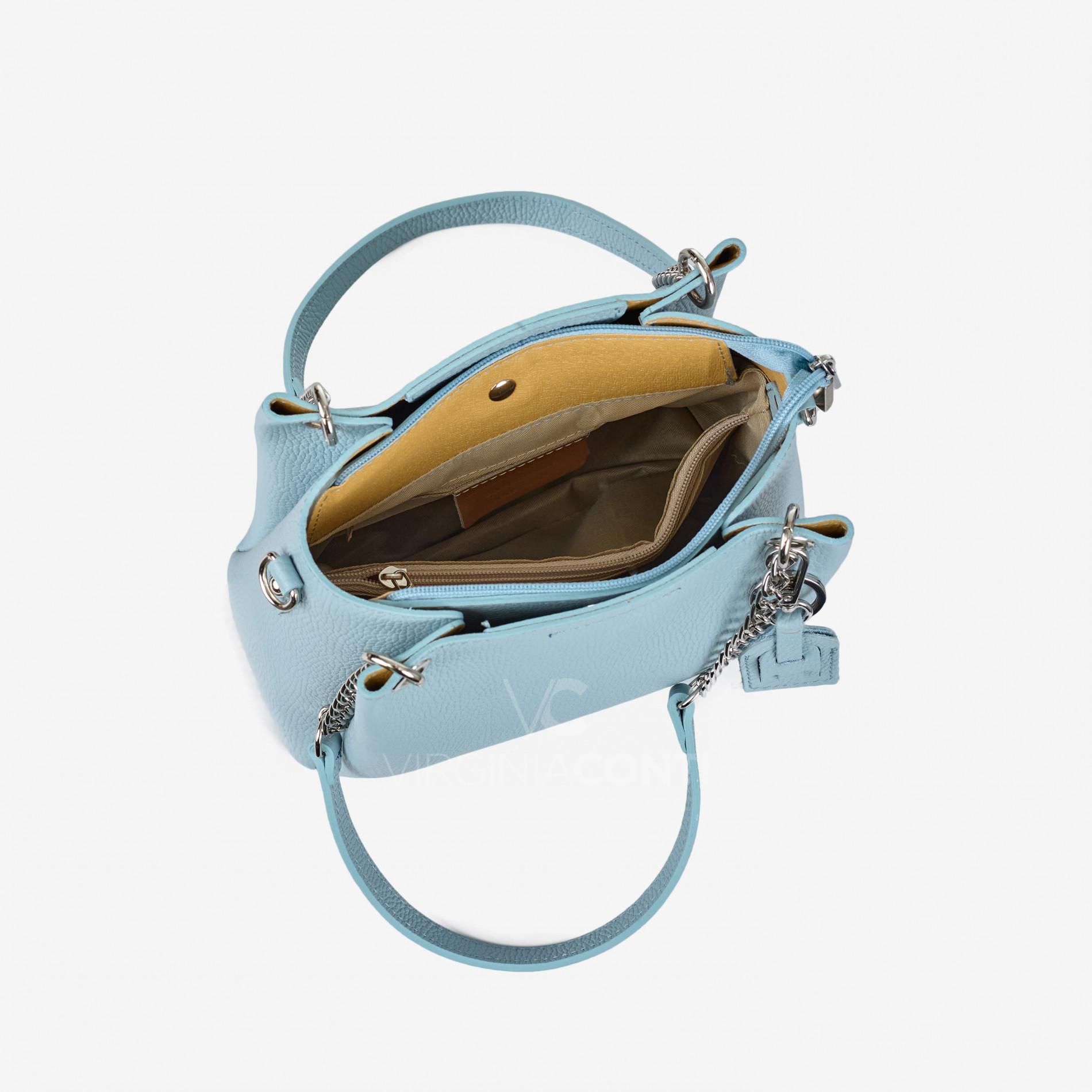 Шкіряна Сумка через плече Virginia Conti блакитна 03422