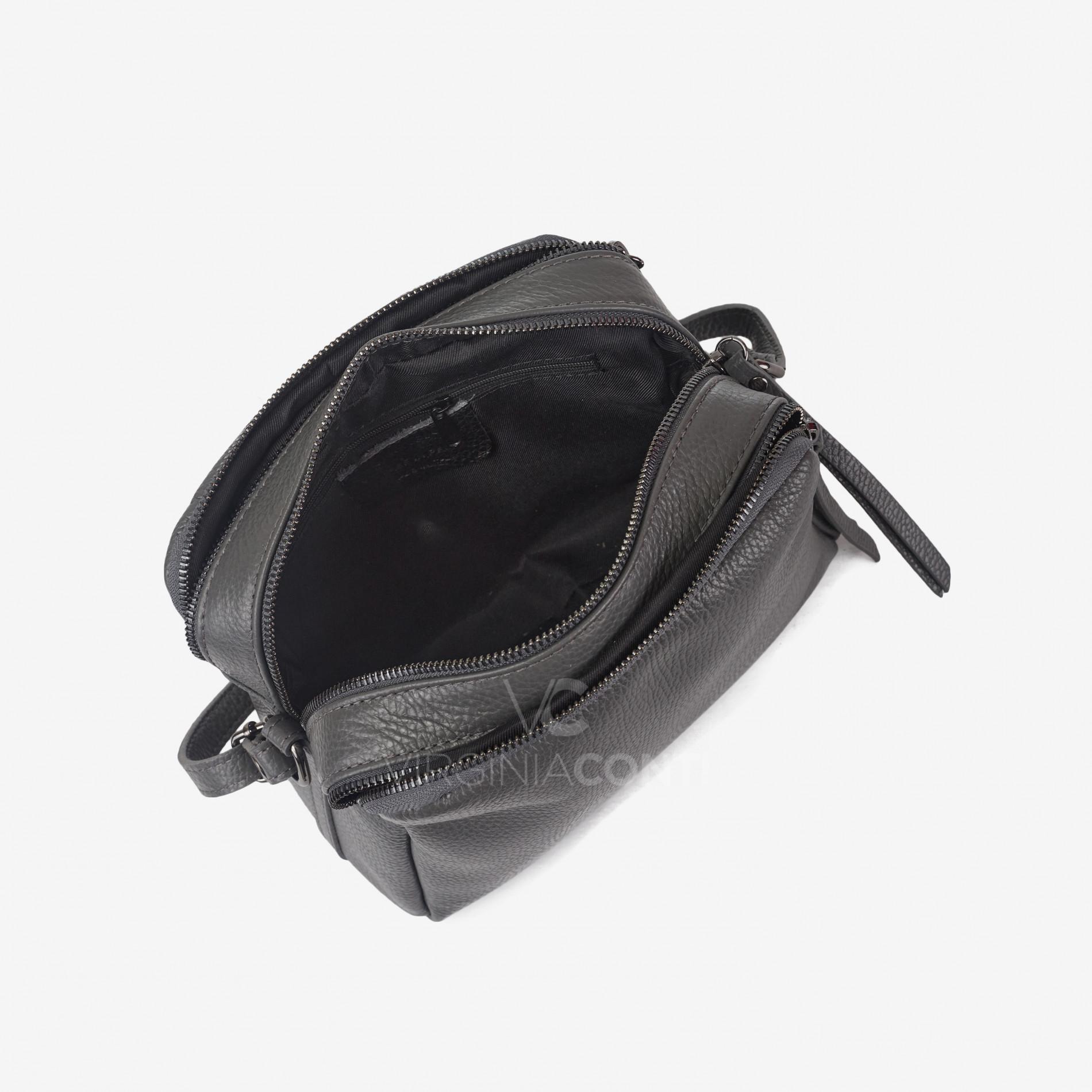 Шкіряна Сумка через плече Virginia Conti темно-сіра 03435_black