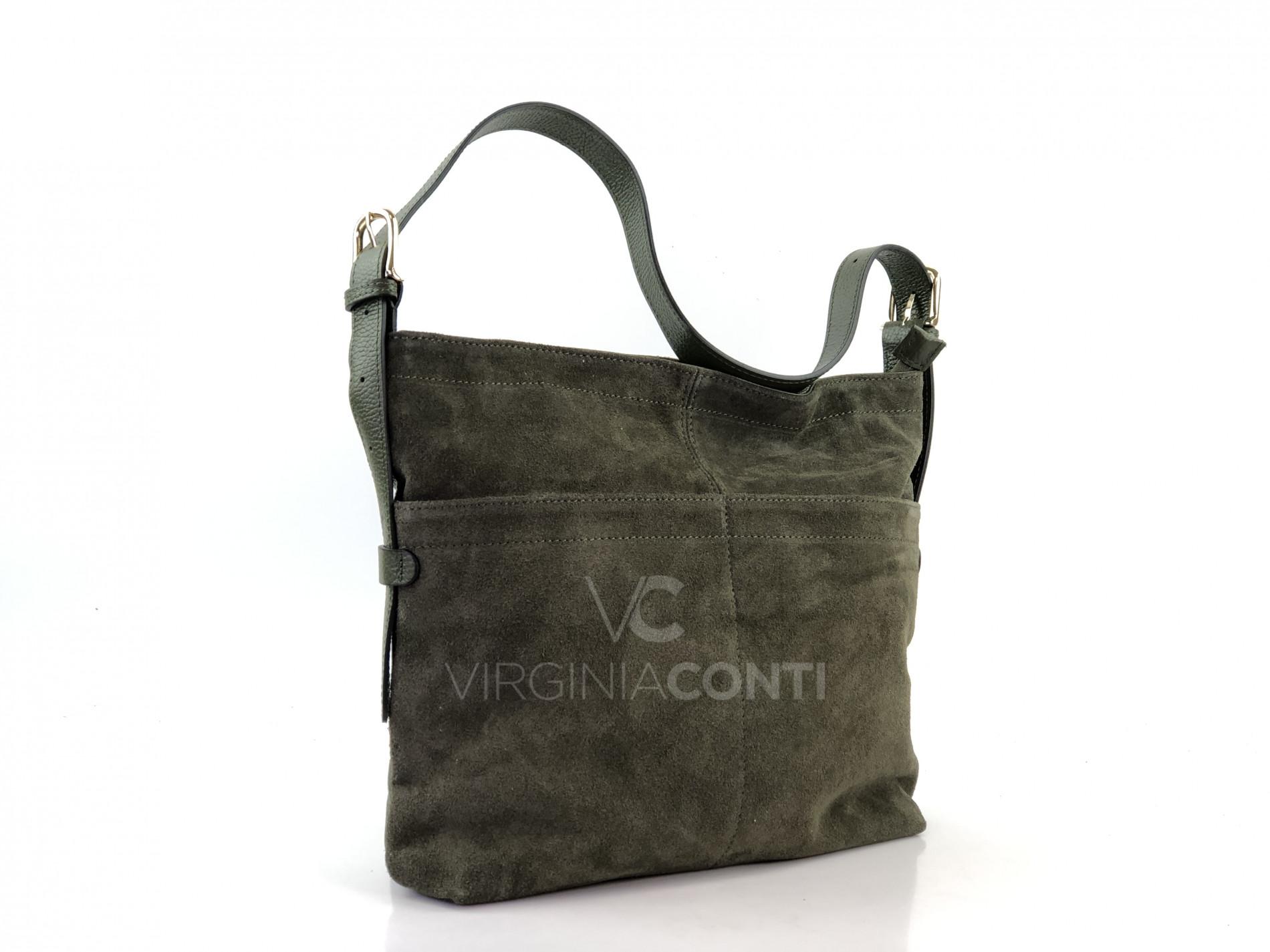 Шкіряна Сумка на плече Virginia Conti кольору хакі 04104