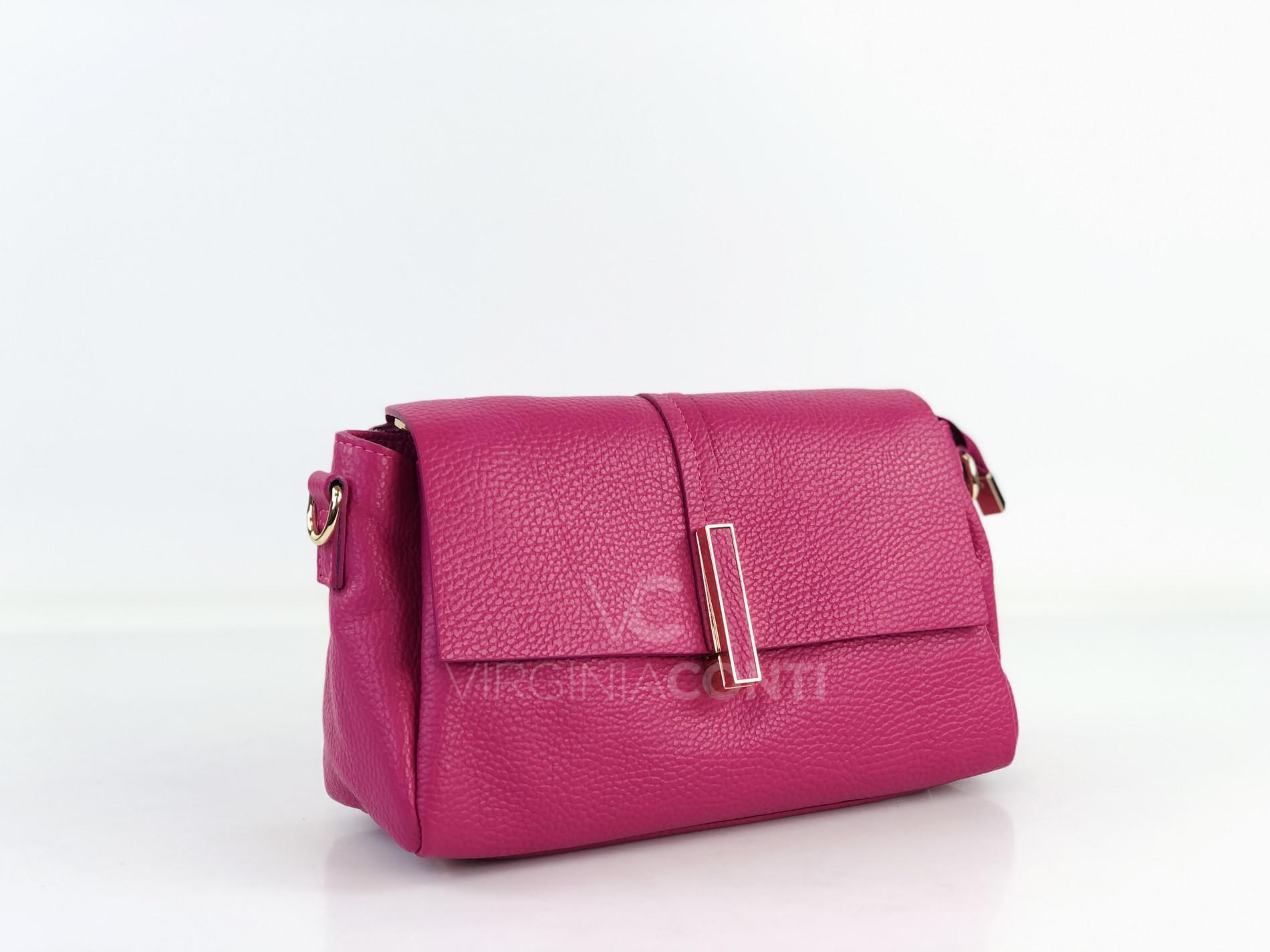 Шкіряна Сумка через плече Virginia Conti кольору фуксія 04154_f