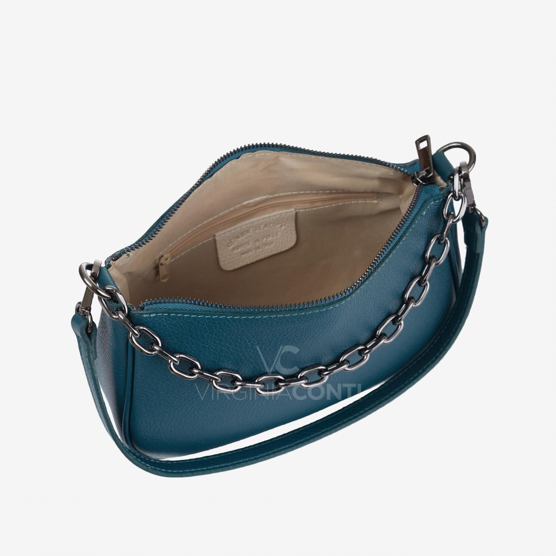Шкіряна Сумка через плече Virginia Conti кольору петроліо 8920 black