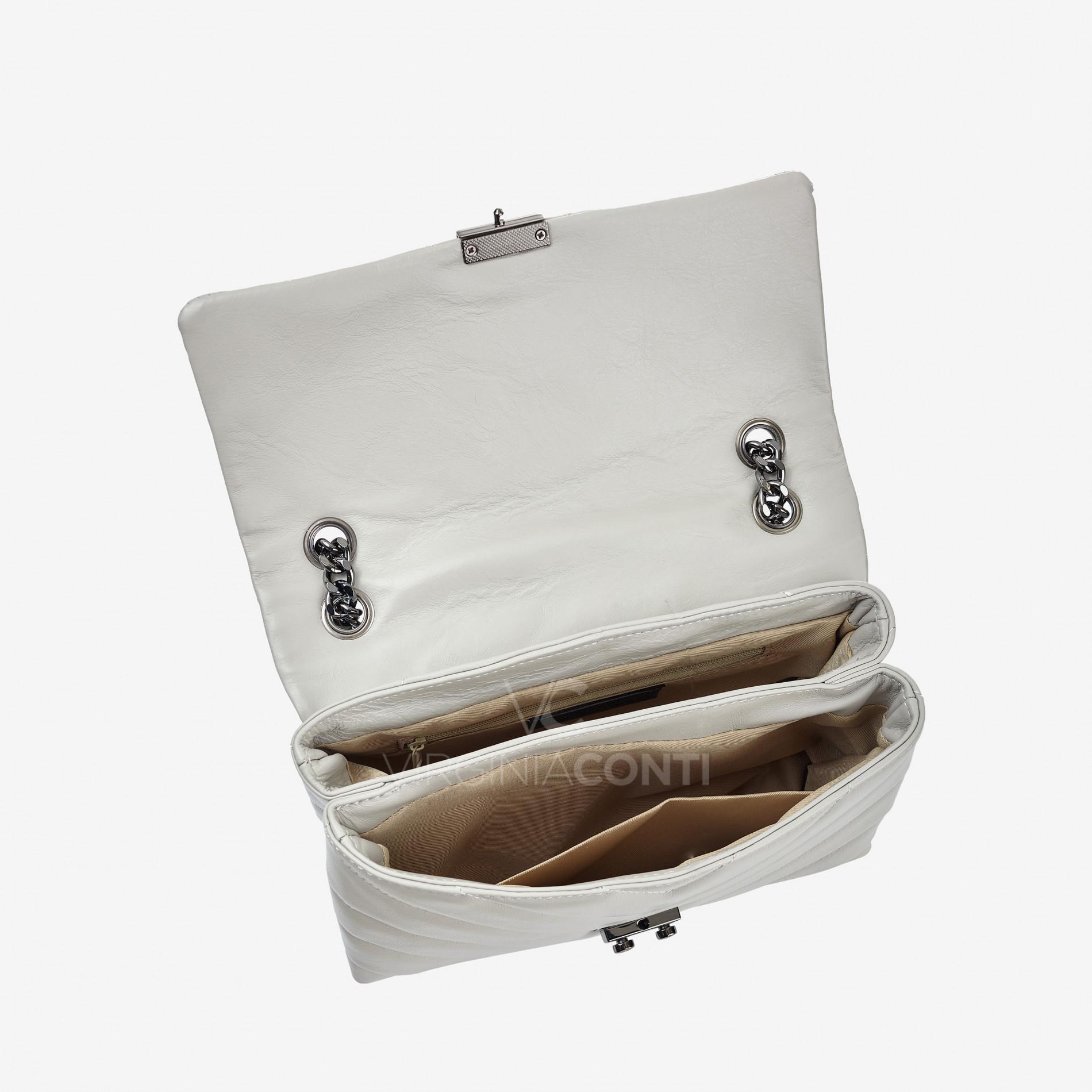 Шкіряна Сумка через плече Virginia Conti світло-сіра 03053_black