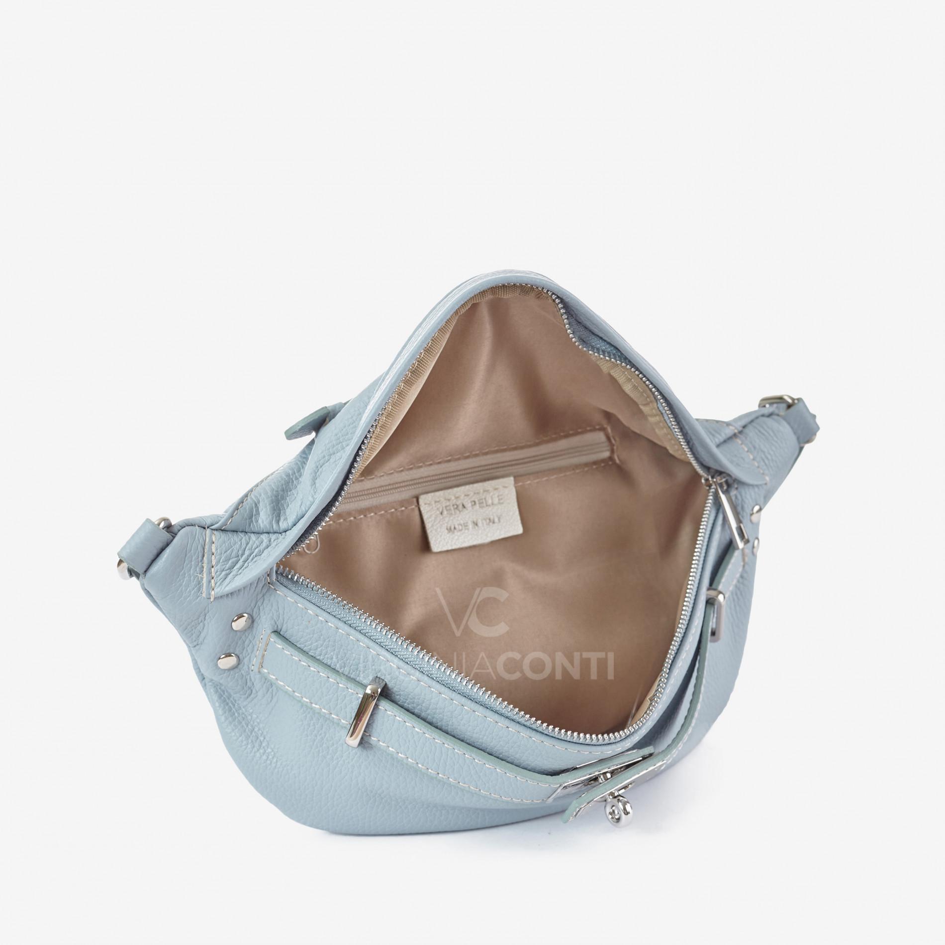 Кожаная Поясная сумка (Сумка-банан) Virginia Conti голубая 03392